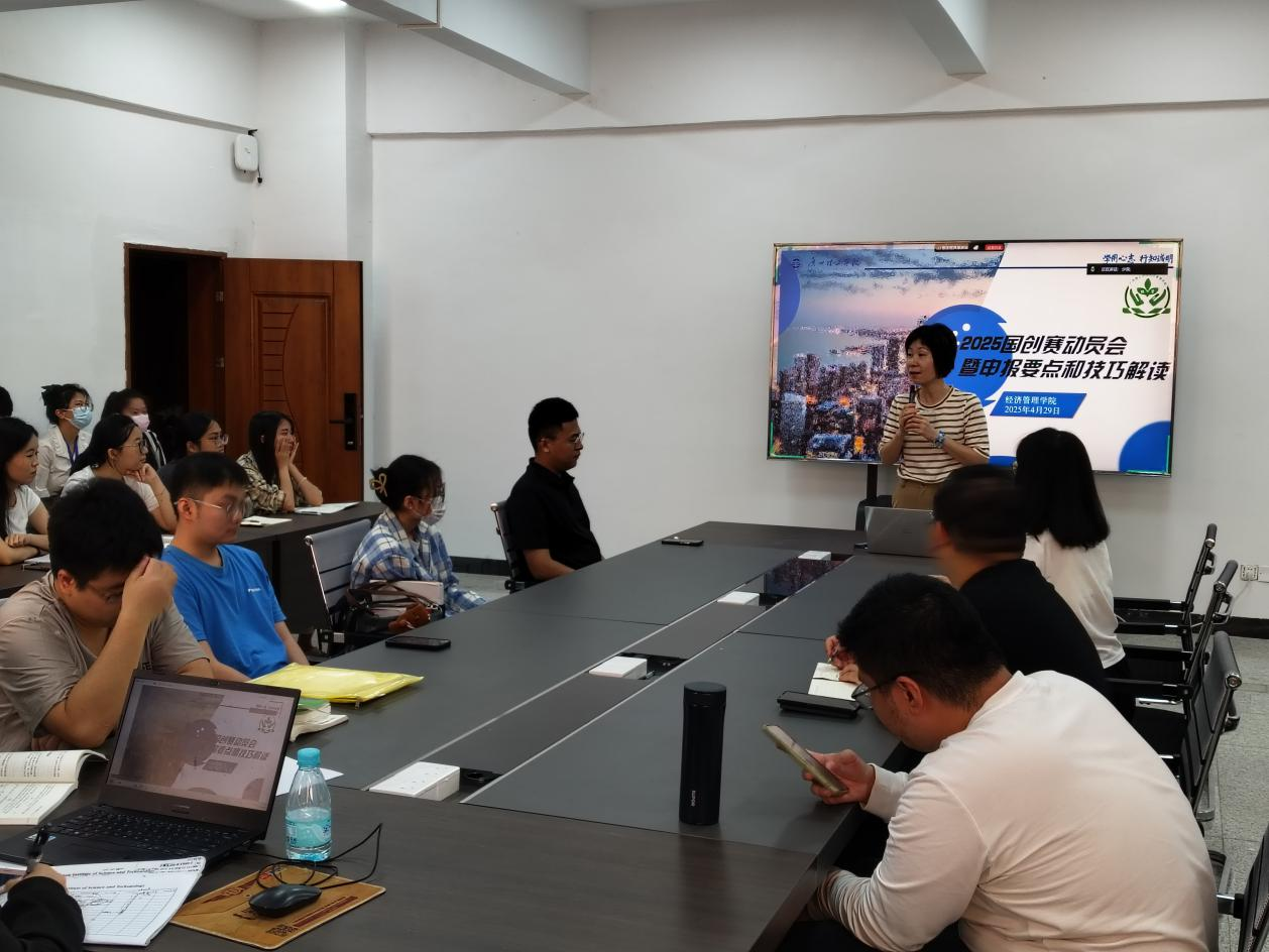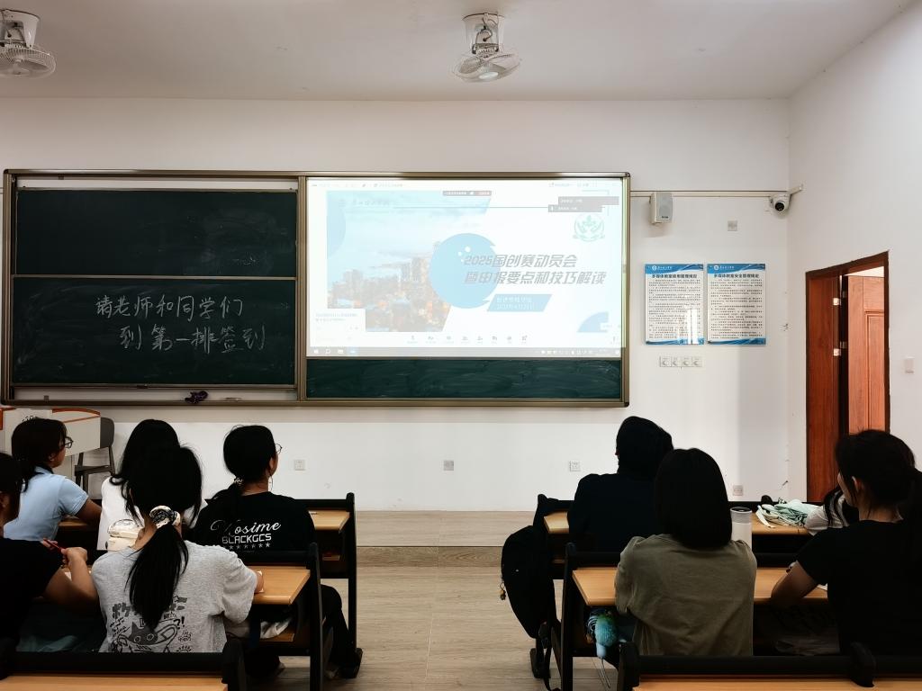 随后,大赛负责老师贾丹丹详细解读了2025年中国国际老员工创新大赛的赛制规则、参赛要求及报名流程,并结合往届优秀获奖案例,分析了项目选题、团队构建和商业计划书撰写的关键要点。老师特别提醒同学们关注报名截止时间,提前做好充分准备,争取在本届大赛中再创佳绩。
