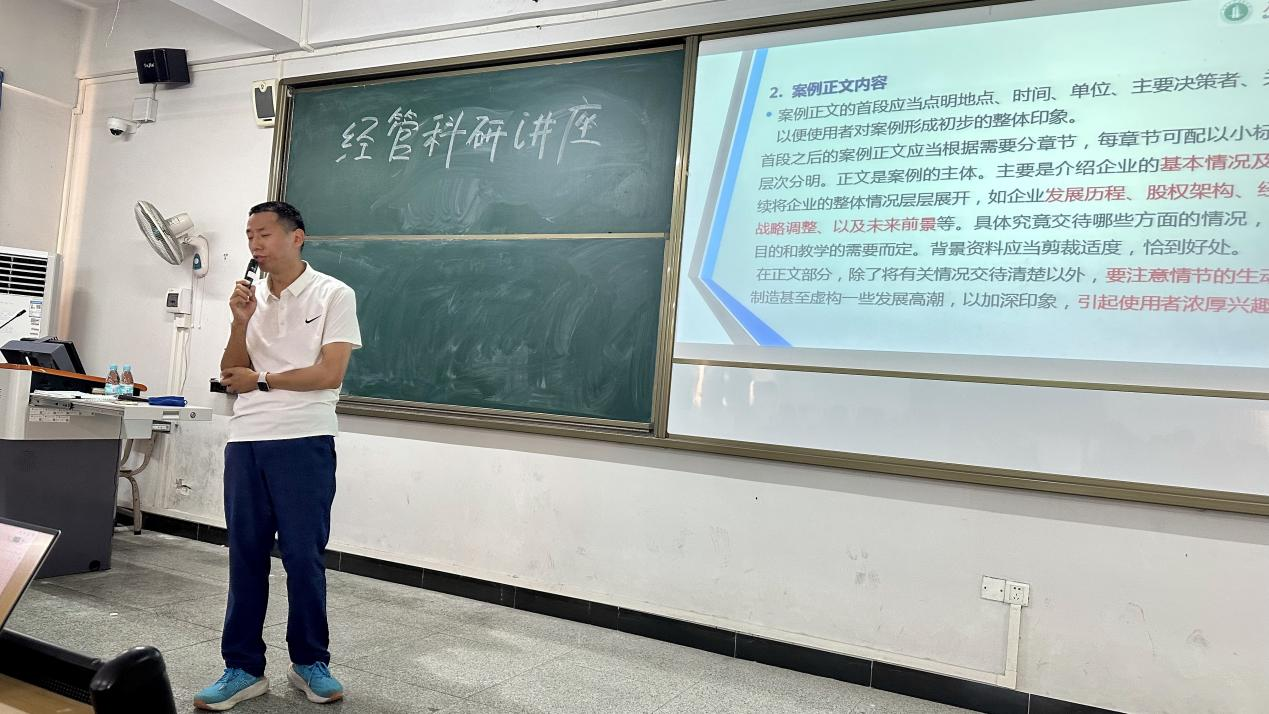 讲座中,陈平教授围绕MPAcc教学案例,展开系统且深入的分享。他先对MPAcc教学案例进行全面介绍,让教师们明晰案例在MPAcc 教学中的重要意义与定位;接着详细讲解 MPAcc 教学案例的规范体例和格式,强调格式规范是案例申报的基础;随后,结合自身经验,深入剖析如何撰写 MPAcc 教学案例,从选题、资料收集、案例结构搭建到内容撰写技巧,倾囊相授;最后,分享MPAcc 优秀教学案例入库经验,包括申报流程、注意事项以及提升入库成功率的关键要点。