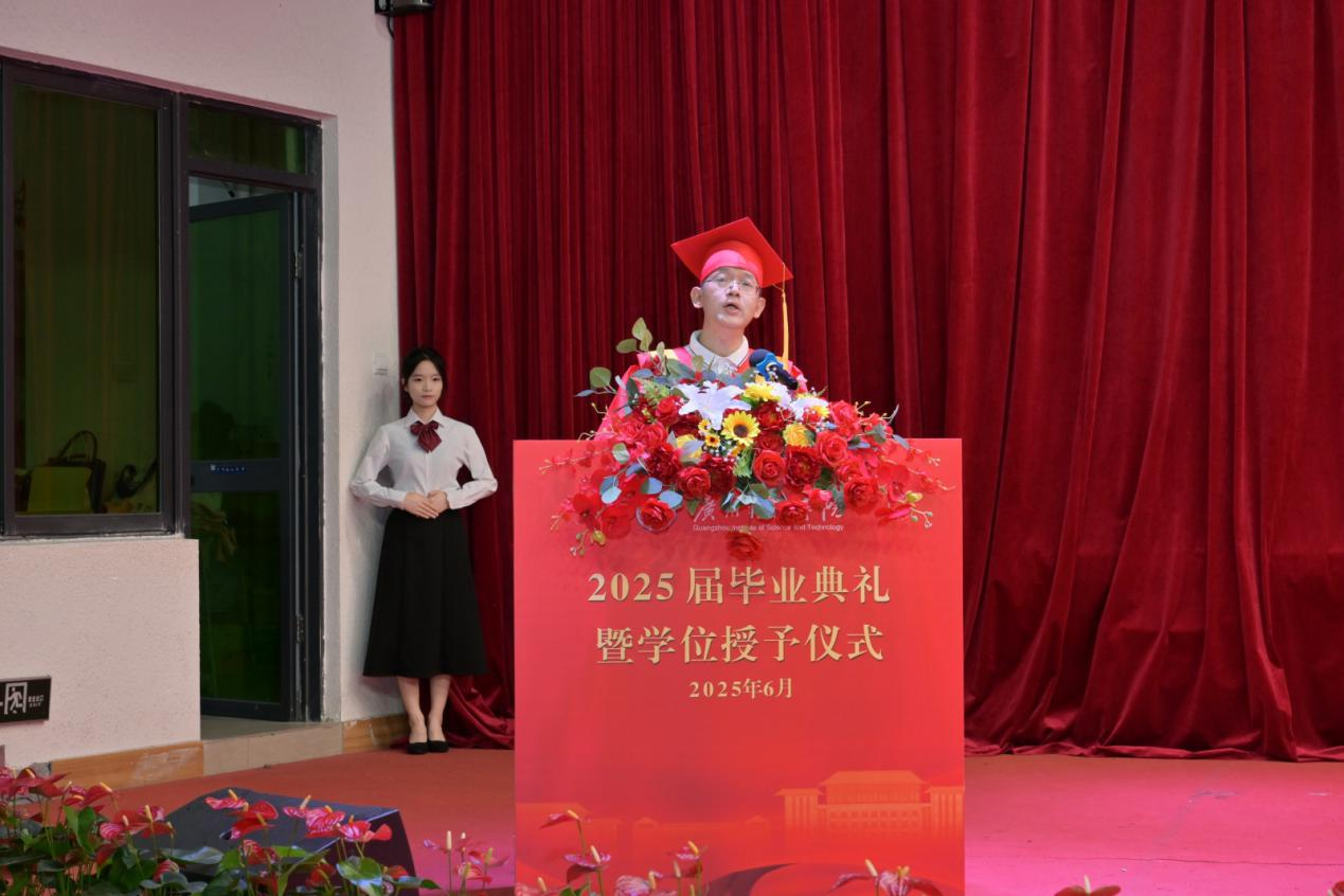 (温凯晴 范晓殷)6月11日,公司2025届毕业典礼暨学位授予仪式在1号报告大厅隆重举行。公司师生齐聚一堂,共同见证这一庄严而温馨的时刻。出席本次仪式的领导有经理谢林林、党总支书记彭康煜、常务副经理李美珍、副经理陈少英,以及公司教授代表、各系主任和全体毕业班辅导员。