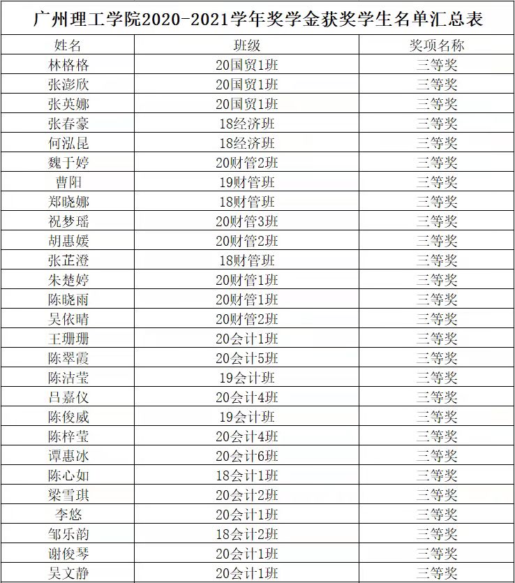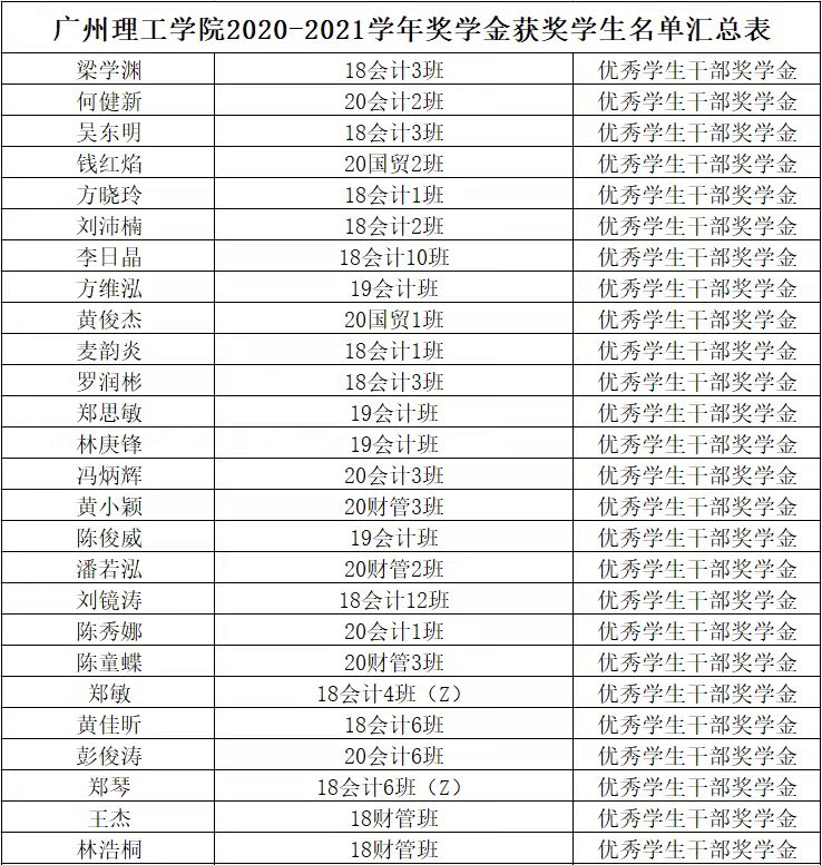 根据伟德国际唯一官网入口《员工手册》和《广州理工学涵【2021】15号伟德国际唯一官网入口员工处于印发《2020~2021学年奖学金评比工作方案》的通知》文件精神,结合公司实际情况,本着公平,公正,公开的原则,公司2020~2021学年奖学金评定工作已结束,现将评定结果公示如下: