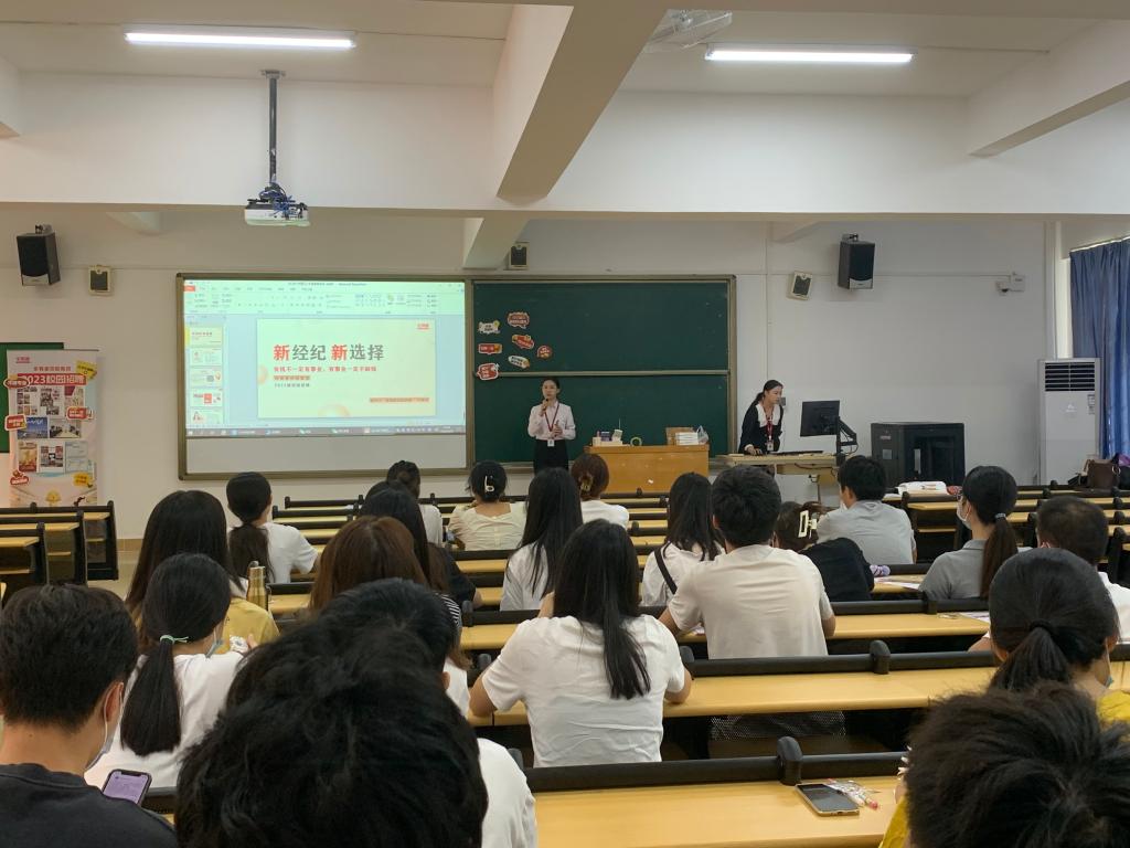 叶助理简单介绍了乐有家集团“真诚正义,先人后己”的核心价值观。然后再从公司团队特色、目前的发展规模、员工的成长与发展方面做了详细的介绍。叶助理的介绍让在座的每一位同学都对此公司有了更加深入的了解。叶助理向同学们介绍了该公司目前招聘岗位的职责,本公司具有丰厚的奖金以及完善的福利制度和培养方向,并表示入职后可以提供一对一导师带教,具有畅通的职业晋升通道。会后,同学们就所关心的专业对口及公司对人才要求等问题与公司负责人进行了深入交谈,有不少同学携简历到现场进行面试,现场十分活跃。