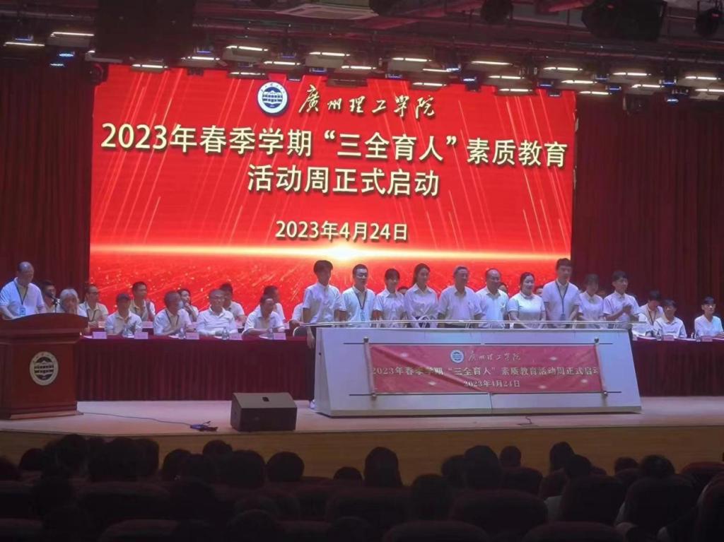 最后,董事长胡社军、党委书记黄圣诚与8位师生代表共同启动了伟德国际唯一官网入口2023年春季学期“三全育人”素质教育活动周。