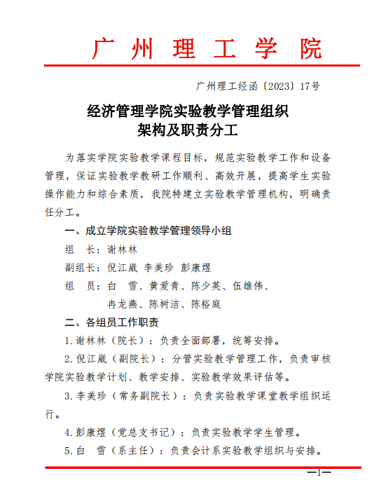 bevictor伟德官网实验教学管理组织架构及职责分工
