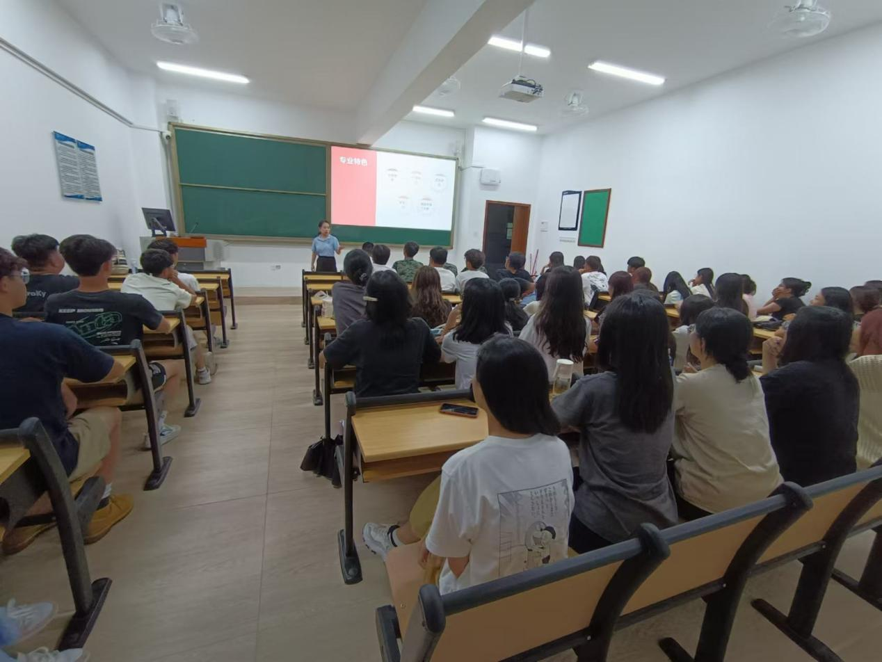 活动中,吴霜主任详尽阐述了专业概况,从团队队伍到培养方案、课程设置,再到专业优势、建设规划,以及校企合作项目、升学和就业前景,为新生们勾勒出了一幅清晰的学习蓝图。她的话语中充满了对专业的热爱与期待,让新生们对即将踏上的学习旅程充满了信心与向往。尤为值得一提的是,吴霜主任巧妙地融入了员工成功的经验分享环节。通过鲜活的事例和宝贵的建议,为新生们点亮了前行的灯塔,不仅让新生们看到了努力的方向,激发了他们对未来的无限憧憬与追求,也让他们感受到了榜样的力量。