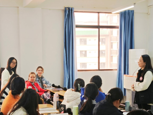课前,吴霜老师精心组织了中俄员工互相交流的环节。员工们热情高涨,纷纷进行自我介绍,分享着各自的兴趣爱好、学习经历以及对未来生活的美好憧憬。俄罗斯员工用流利的中文和英语讲述着自己的故事,展现出他们扎实的语言功底和跨文化交流的热情;公司员工则详细介绍着校园生活的丰富多彩和专业学习的点点滴滴。中俄不同文化视角的交流,让现场氛围轻松愉悦,笑声与掌声此起彼伏,为接下来的课程学习奠定了良好的基础。