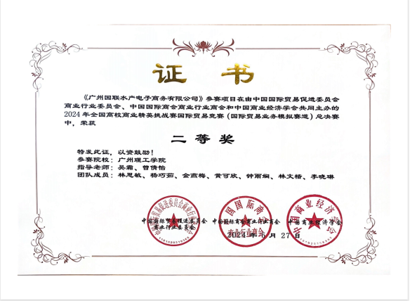 (通讯员:曾倩怡)2024年5月28日,第十四届全国高校商业精英挑战赛国际贸易竞赛(国际贸易业务模拟赛道)总决赛在浙江省宁波市圆满结束。在吴霜和曾倩怡两位指导老师的带领下,公司bevictor伟德官网的2支参赛队伍在激烈的竞争者脱颖而出,均荣获国家二等奖,此外,公司还荣获最佳院校组织奖。这一成绩的取得,不仅是对公司国际贸易专业公司产品水平的充分肯定,也展示了公司员工在全国高校中的卓越实力。